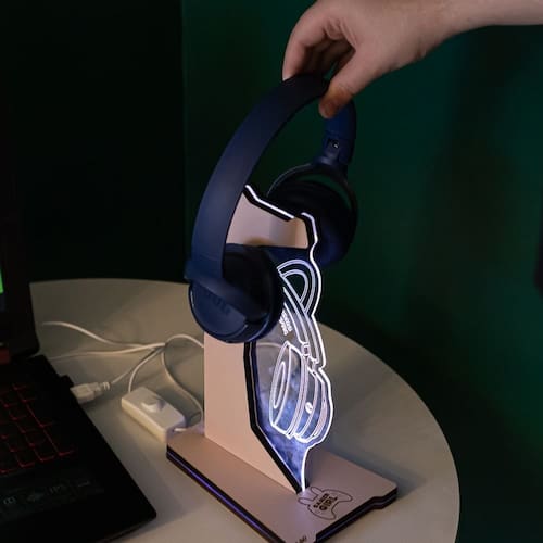 Com o Suporte de Fone - Gamer Girl, seus descansos entre uma jogatina e outra serão muito mais práticos. Seu setup ficará muito mais organizado com esse suporte, que ainda vem com LED alimentado por cabo USB que mudam de cor com o auxílio de filtro de luz. Dimensões do suporte: 31 cm x 20 cm x 4 cm. Material: MDF, acrílico, poliestireno e componentes eletrônicos. Contém: 1 suporte para fone.