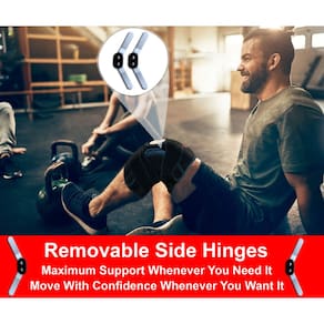 - ? Comece a se mover novamente – sem dor! Este suporte de joelho versátil permitirá uma ampla variedade completa de movimentos enquanto protege, recupera e alivia a dor no joelho. Dobradiças removíveis e alça altamente ajustável permitem que você escolha quanto suporte você recebe a qualquer momento!
