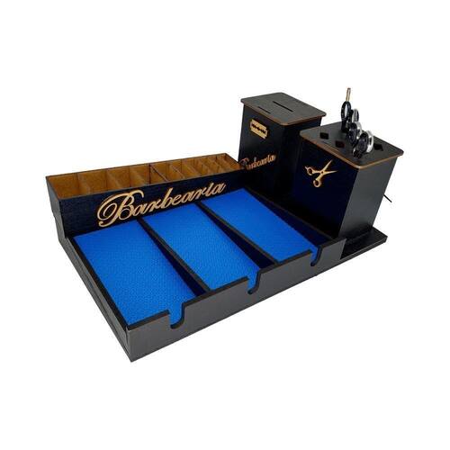 Suporte de Máquina + Descarte Lâmina + Suporte Tesouras -MDF Descrição O Kit Suporte de Máquina + Descarte Lâmina + Suporte Tesouras, suporte para 3 Máquinas de corte com ou sem fio + suporte para pentes de altura + suporte para até 6 tesouras + caixa de descarte de lâminas. Benefícios - Espaço para até 3 máquinas de corte- Suporte para pentes de altura das máquinas- Suporte removível para até 6 tesouras- Caixa de descarte de lâmina Medidas Largura - 39cmProfundidade - 27cmAltura - 14cm