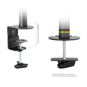 Abertura máxima da morsa: 8,5cm (espessura máxima que a mesa pode ter para que você consiga usar este sistema em seu suporte de monitor).