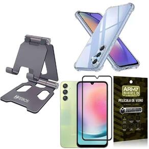 Kit capinha samsung a24 + suporte de mesa + película 3d