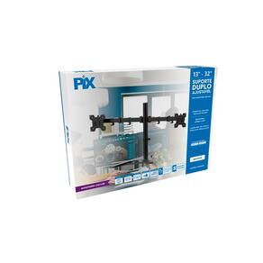 Em tempos em que precisamos de equipamentos cada vez mais confiáveis e seguros para as tarefas cotidianas, ter um suporte de monitor adequado e ergonômico faz toda a diferença no trabalho. O suporte duplo para monitor da PIX possui ajuste de altura, ajuste de ângulo de visualização e compatibilidade com o padrão VESA até 100x100. PIX, áudio, vídeo e você. Características: - Marca: PIX - Modelo: PX-23 Especificações: - Composição: Aço e plástico - Cor: Preto - Padrão VESA - Capacidade: 8kg - Rotação: 360° - Inclinação: 90° - Articulação: 180°