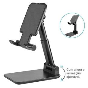 Benefícios Suporte de mesa para celular, com altura e inclinação ajustável antideslizante Com altura e inclinação ajustável, o celular pode ser na horizontal ou vertical com total estabilidade Design compacto inovador garante mais estabilidade e segurança, para assim possibilitar o uso do celular ou tablet a qualquer momento Vantagens Compatível com tablets e smartphones Ideal para posicionar o smartphone ou tablet na sua mesa Marca: Não Informado