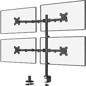 Please check the Mount : * Fit Number of Monitors: Four * Monitor Size: Up to 27” * Weight Capacity: Maximum 22lbs per Arm * mounting holes Size: 75x75mm and 100x100mm Two Locking System: * C-Clamp: Maximum support 4” thick desk * Grommet-Base: Maximum support 4” diameter desktop cable grommet hole and 3” thick desk. Adjustment: * +90° ~ -90° tilt * +90° ~ -90° swivel * 360° rotate * 31.5” height pole * Up and Down 0.8” monitor height adjustable Benefit: * Opening up desk space for a new range of adaptable display position. * Work more comfortable with the ergonomically correct position to reduce neck and eye strain. Package Include: *1 x WALI Quad Monitor Mount (Black) * Mounting Hardware Kit * User Manual - Compatibilidade: O suporte para monitor se encaixa na maioria dos monitores de tela plana de até 27 polegadas e suporta peso de até 10 kg por braço. As placas de montagem destacáveis e ajustáveis em altura se adaptam aos orifícios de montagem de 75 x 75 mm e 100 x 100 mm. - Múltiplas opções: o sistema de bloqueio de dois estágios se adapta ao grampo C de 10 cm e à base de ilhós de 7,6 cm. - Vários ajustes: os braços de alta qualidade se estendem e retraem, inclinam e giram +/-90° para alterar os ângulos de leitura e giram 360° do modo paisagem para retrato. - Benefícios duplos: o braço do monitor é facilmente ajustável em um poste de 80 cm de altura. Dupla eficiência e produtividade ao abrir espaço na mesa permitem trabalhar em uma posição mais confortável e ergonomicamente correta para reduzir o cansaço no pescoço e nos olhos. - O pacote inclui: 1 suporte para monitor quádruplo WALI (preto) x 1, kit de ferragens de montagem, manual do usuário, suporte ao cliente experiente e amigável nos EUA disponível para ajudar 7 dias por semana.