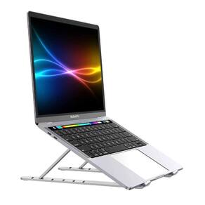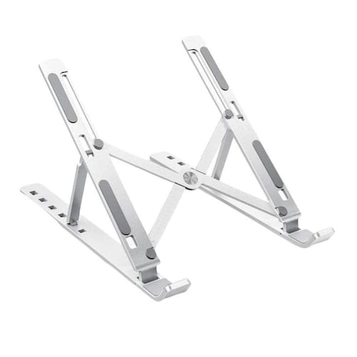 Suporte de Mesa para Notebooks e Tablets em Alumínio Utilize este suporte como uma resistente base de apoio para seu notebook ou tablet quando colocado sobre mesas e outras superfícies lisas. Ele mantem seu laptop suspenso, permitindo ajuste em 6 diferentes níveis, para que você encontre um ângulo de operação confortável e altura ideal com base na sua necessidade de uso. O design ergonômico facilita a observação e a digitação, aliviando dores no pescoço, ombros e coluna.