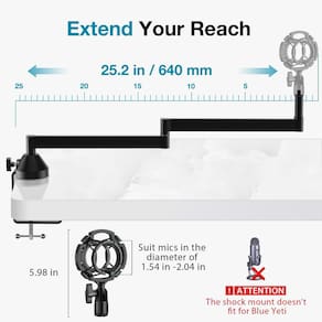 Suporte de braço compacto de baixo perfil: o braço de lança de baixo perfil fica a apenas alguns centímetros de sua mesa (4,33 polegadas). Ele pode ser facilmente guardado embaixo de um monitor e não bloqueia seu rosto ou câmera para uma visão verdadeiramente desobstruída. Com um design limpo e simplificado, esse braço de microfone permite um espaço de trabalho livre de bagunça.