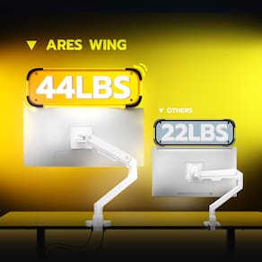 O suporte para monitor de computador ARES WING foi projetado com uma estrutura robusta e um mecanismo confiável de mola a gás. Ele pode suportar com segurança telas planas e curvas ultra-largas de até 44 libras e 17 “a 49". Seus ajustes flexíveis permitem encontrar facilmente os ângulos e posições de visão preferidos. Este braço de monitor de mesa combina resistência e estilo para elevar o espaço de trabalho. A placa VESA de liberação rápida e a base de instalação na parte superior aprimoram sua experiência de uso. A base inteligente aprimora a funcionalidade com portas USB-A e USB-C convenientes, tornando-a uma escolha elegante e eficiente para seu espaço de trabalho. -?Suporta monitores de até 49" e 44 libras?O braço de monitor único ARES WING tem uma estrutura de inclinação otimizada e oferece excelente capacidade de suporte de peso para telas ultra amplas, incluindo a maioria dos populares monitores de computador planos e curvos ultra-largos de 49". Com uma capacidade máxima de peso de 44 libras, ele pode suportar com segurança um monitor de 17 “a 49" e é compatível com VESA 100x100 e 75x75mm. Se o monitor não tiver um orifício VESA, você precisará preparar um adaptador de montagem VESA. -?Amplitude total de movimento?Este braço de montagem em mesa para monitor apresenta excelente flexibilidade e ajuste. Ele oferece uma inclinação de +50° a -20°, rotação de 180°, ajuste de rotação de 360°, uma faixa de altura ajustável de 8,7" a 18,7" e uma extensão máxima do braço de 22,4". Você pode personalizar uma postura ergonômica ideal para reduzir a tensão no pescoço e nas costas e proporcionar um momento de entretenimento mais saudável. -?Base inteligente com portas USB A/C?Para um ambiente de trabalho e de jogo mais organizado, esse braço de monitor ultralargo resolve o problema do caos de cabos e libera um espaço precioso no desktop. Com portas USB 3.0 integradas, ele permite carregar facilmente seus smartphones, equipamentos de jogos e transferência de dados. Ao recuperar mais de 80% da área de seu desktop, ele oferece mais espaço para seus gadgets e decoração exclusivos. -?Construído para durar?É um prático braço para monitor de computador feito de aço e alumínio de alta qualidade. A mola a gás interna passou por mais de 20.000 testes de fadiga para garantir que o braço seja forte e durável. Isso significa que você pode usá-lo com confiança, sem se preocupar com problemas. -?Instalação fácil e rápida?Nosso suporte para monitor de mesa oferece duas opções de montagem: suporte com braçadeira C (para mesas de 0,5 “a 1,8") e suporte com ilhó (para mesas de 0,5 “-2"), ambos muito simples. Sua fácil instalação na parte superior elimina a necessidade de ficar embaixo das mesas, e o design da placa VESA removível facilita o processo de instalação do monitor.