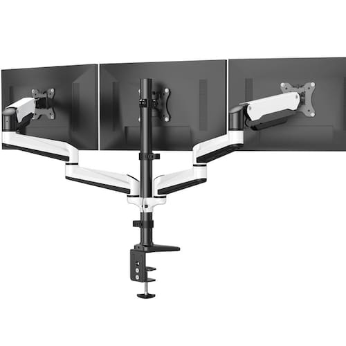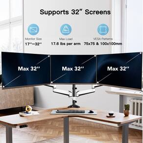 b>Huanuo Triple Monitor Stand, torne seu trabalho eficiente e melhore sua postura! Crie um estilo de trabalho eficiente com três telas e livre-se das dores no pescoço, ombros e costas com o suporte de monitor triplo huanuo hnta3w! A construção sólida e a base resistente comportam com segurança 3 monitores de até 32". O sistema de mola a gás permite que você ajuste livremente seus monitores na altura desejada; os ajustes de movimento total ajudam a encontrar o ângulo ideal para trabalhar com mais conforto. Melhore a postura e aumente a eficiência do trabalho Eleve seus monitores a uma altura ergonômica, aliviando a tensão nas costas e no pescoço e no pescoço, aumentando a eficiência do trabalho com 3 telas ao mesmo tempo. Super Space Saver Hold 3 monitores em 1 suporte, libera muito espaço valioso no desktop, tornando sua estação de trabalho espaçosa e livre de bagunça. Ajustes de movimento total e ângulo de visão ideal Cada articulação do braço é ajustável. Além disso, este braço pode fazer seu monitor inclinar de -90° a +85°, girar de -90° a +90° e girar 360°. É fácil encontrar um ângulo de visão ideal conforme sua necessidade. Fácil montagem e 2 opções de montagem — cabe na mesa com ou sem furo. A braçadeira C se encaixa na espessura da mesa de até 3,35", enquanto a espessura máxima da mesa para a base do ilhó é 2,36". - É fácil montar o monitor com uma placa VESA removível que se conecta à parte traseira da tela, pressione a aba de metal e deslize de volta para o suporte. Não é necessário ajustar os parafusos. GERENCIAMENTO EFICIENTE DE CABOS O sistema integrado removível de gerenciamento de cabos ajuda a manter os cabos AV e de alimentação fora da vista e organizados. O gancho de arame pode ser colocado como ferramenta de chave hexagonal para economizar espaço. - Suporte universal para 3 monitores de computador - Compatível com três monitores de computador planos/curvos 17 18 19 20 21 22 23 24 25 26 27 28 29 30 31 32 polegadas com orifícios de montagem VESA de 75 x 75 e 100 x 100, cada braço suporta 17,6 libras - Workspace Saver - Libera convenientemente mais espaço de trabalho valioso ao elevar 3 monitores de sua mesa, tornando sua estação de trabalho espaçosa e livre de bagunça. - Personalizado para uma visão ideal - Os braços totalmente articulados permitem que seus monitores girem, inclinem e girem para encontrar o ângulo de visão e a posição ideais para um trabalho confortável. Defina livremente seus monitores para o modo paisagem ou retrato! - Aumente o conforto e a eficiência - Conclua seu trabalho em 3 monitores ao mesmo tempo, com uma posição de visualização confortável. Agora você pode melhorar sua eficiência de trabalho em uma postura de trabalho confortável. - 2 opções de montagem - A braçadeira C e a base de montagem do ilhó mantêm seus monitores com segurança. Escolha o método de montagem adequado conforme sua necessidade.