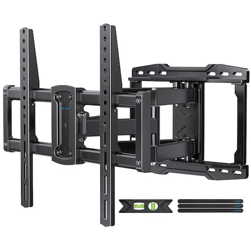 - ECONOMIA DE ESPAÇO: O design do braço de articulação dupla garante resistência confiável; Este suporte articulado para TV pode retrair 6,4 cm da parede na posição de casa para economizar espaço e também se estende até 42 cm da parede; com abraçadeiras para gerenciar cabos de TV