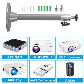 Compatível com: O suporte para mini projetor é compatível com QKK, DR.J, DBPOWER, Anker, VANKYO, AAXA, Jinhoo, PVO, TMY, AuKing, CiBest, FANGOR e a maioria dos outros miniprojetores. Observação: Certifique-se de que o projetor vem com orifício para parafuso de tripé antes de licitar o item. Informações do produto: Comprimento: 175 mm Peso: 72 g Carga de segurança: 5KG Cor: Cinza - Montagem universal: o suporte universal para projetor se encaixa na maioria dos mini projetores com 3 tamanhos de adaptadores de parafuso com um comprimento de 175 mm/6,88 pol. - Tamanho dos adaptadores de parafuso: 3,9 mm/0,154 pol, 6 mm/0,236 pol, 6,35 mm/0,25 pol. - Característica de uso: ângulo de inclinação - 90 graus, ângulo de rotação - 360 graus, carga de segurança - 5 kg. - Simples e conveniente: o poste de montagem do projetor é fácil de ser instalado com acessórios, parafusos e 3 adaptadores. Basta girar o botão e apertá-lo para obter o melhor ângulo. - Observação: Certifique-se de que o projetor vem com orifício para parafuso de tripé antes de licitar o item.