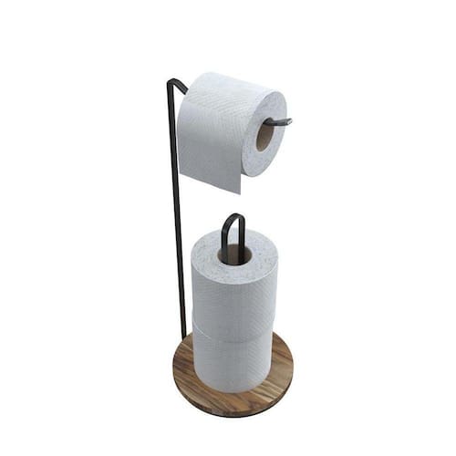 O ;Suporte de Papel Higiênico com Base em Madeira - Stolf tem o acabamento em epóxi pó, responsável pela coloração preto fosco, ele é uma forma de pintura que envolve toda a superfície do produto, garantindo que o aço fique protegido da água e outros agentes que possam influenciar na vida útil do produto. Esta pintura, além de moderna, é extremamente recomendada para as indústrias, pois a taxa de impactos ao meio ambiente são menores e por não possuir solventes em sua composição.