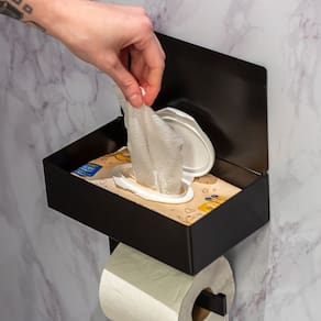 Com ele você pode armazenar seus lenços umedecidos ou qualquer outro item de higiene pessoal de forma discreta e longe de poeiras e bactérias. Se você também é daqueles que gosta de deixar tocando uma trilha sonora toda vez que vai tomar um banho relaxante, o Porta Papel Easily serve também como um ótimo suporte para deixar seu celular.