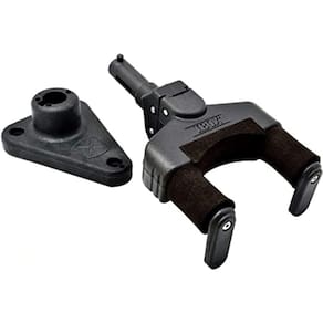 Suporte AGS fixo de parede para instrumentos de corda, apoio no head stock e sistema de travamento automático com o peso do instrumento Capacidade até 15kg Travamento automático O Suporte AGS foi projetado para ser instalado em paredes. O apoio no head stock oferece proteção, segurança e praticidade Base de plástico