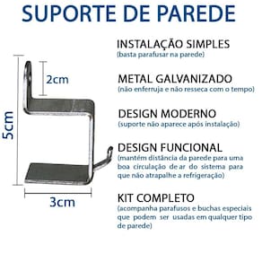 Suporte de parede em metal de alta resistência e durabilidade, com design moderno que mantém o purificador afastado da parede para circulação de ar. Fácil instalação com kit completo de buchas e parafusos.Função retrolavagem