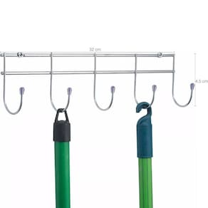 Pequenos cuidados com seu lar fazem toda a diferença. #Ganchos Multiuso #Cinco Ganchos #De Fixar Garantia: 1 Ano / Peso: 110g / Cor: Cromado / Ref: 72321 Dimensões: 32cm (C) x 4,5cm (L) x 8,5cm (A). Cuidados: Não lavar com materiais abrasivos. Comporta: Cintos, bolsas, toalhas, gravatas, chaves. Acompanha: Dois parafusos. Material: - Aço cromado: Possui uma camada extra de protetivo aplicado sobre as peças que resulta em uma resistência muito grande contra a ferrugem. Este cabide multiuso tem cinco ganchos que lhe trarão mais praticidade em vários ambientes de sua casa, assim como nos quartos, lavanderia e cozinha. Podendo ser utilizado como porta bolsas, casacos, vassouras e pazinhas, talheres, entre outros. Ideal para organização de sua casa, lhe trazendo mais eficiência e economia de tempo.