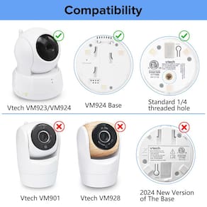 Suporte de parede ajustável para monitor de bebê compatível com monitor de vídeo VTech VM923/VM924/VM919HD, ângulo de visão perfeito sem ferramentas - Compatibilidade: este suporte para monitor de bebê foi projetado exclusivamente para Vtech VM923/VM924/VM919HD, também serve para outras câmeras para bebês com orifício de rosca padrão de 1/4 (NOTA: verifique o modelo da câmera antes de fazer seu pedido) - Ângulo de visão perfeito: ajustável em 360 graus o ângulo permite que você posicione a câmera do bebê de forma flexível, sempre fique de olho no seu bebê dormindo - Duas formas de instalação: nosso suporte para câmera para bebês é fácil de instalar com parafusos ou fita adesiva incluídos, basta escolher o método de sua preferência. A fita adesiva garante uma fixação segura para sua câmera - Mais segura: feita de material premium, este suporte permite uma instalação de longa distância, mantendo o monitor a uma distância segura do berço e, portanto, mais seguro para seu bebê - Lista de pacotes: 1 suporte de parede para monitor de bebê, 1 conector adaptador, 3 parafusos de parede, 3 âncoras de parede, 1 manual