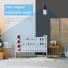 -?Ângulo ajustável de 360 graus?O suporte de parede da câmera Owlet tem um ângulo ajustável de 360 graus, então você pode ajustar o ângulo ideal desejado para ver o campo de visão do seu bebê mais amplo