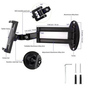 - ?Design ajustável?: Suporte para tablet com um braço pode ser dobrado da direita e esquerda, permitindo que outro braço de suporte estenda e dobre a liberdade, modos retrato e paisagem de rotação de 180°, garantindo a melhor legibilidade ao montar o tablet na parede, girando o anel de cabeça esférica de metal com rotação de 360°, o tablet pode capturar a melhor visualização facilmente.