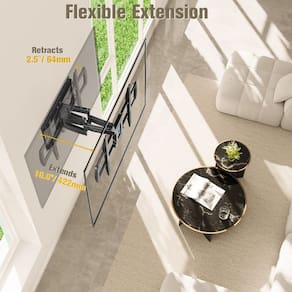 - [Melhore sua visão] Este suporte de TV de movimento completo consiste em 6 braços articulados que podem se estender até 16,6 polegadas e se retrair até 2,5 polegadas da parede. A visualização é mais agradável com este suporte de TV montado na parede. Ele aumenta a flexibilidade de visualização inclinando a TV para cima e para baixo em 15° para evitar reflexos, girando-a 45° e ajustando o nível de 4°.