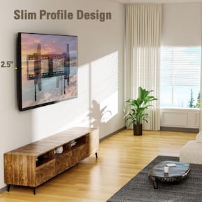 - Ajuste de nivelamento e economia de espaço: o suporte de parede inclinável da TV pode nivelar ± 1° após a instalação, o que permite um nivelamento perfeito da TV. O perfil fino de 2,5" permite que você monte sua TV quase encostada na parede para economizar espaço e deixar a casa limpa.