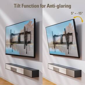 - Grande ângulo de inclinação com alça sem ferramentas: o suporte de parede inclinável da TV pode inclinar a TV para frente em até 15° para evitar ofuscamento e para trás em até 5° para facilitar o acesso ao cabo.