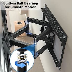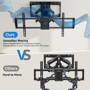 - Suporte de parede Full Motion TV: o suporte de parede articulado inclina a TV para cima e para baixo 13° e gira a TV para a esquerda e para a direita em 45° para posicionar sua TV exatamente onde você deseja. O suporte de parede para TV de 65 polegadas se estende por 16,3" para aproximar sua TV para uma visualização mais confortável e se retrai 2,4" para movimentos suaves e economia de espaço.