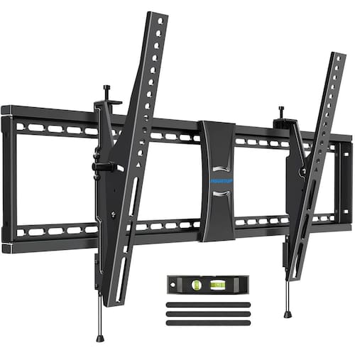 - Seguro e conveniente: este suporte de parede de TV inclinável grande tem um design de placa de parede aberta permitindo que seja montado diretamente sobre tomadas elétricas para uma instalação super limpa. Bloqueia e libera sua TV com cabos de puxar e as bordas elegantes do painel evitam que ela escorregue