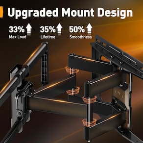 - Resistência aprimorada: feito com braços articulados 33% mais grossos e uma placa de parede reforçada maior (17,1 ? x 10,6 ?), este suporte de parede para TV listado pela UL fornece suporte sólido para TVs grandes de até 132 libras. Travas de segurança e tampas antiderrapantes garantem a máxima estabilidade de montagem na TV para um desempenho duradouro.