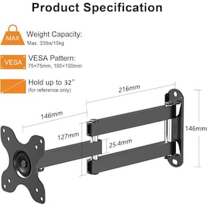- Compatibilidade - compatível com VESA 75x75mm e 100x100mm, adequado para paredes de concreto/vigas de madeira. NÃO monte em drywall.