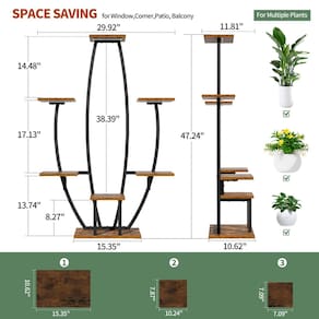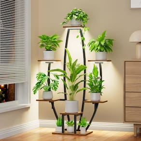 Suporte interno para plantas JUSTOGO com luzes de cultivo para exibição e decoração de casa Um suporte de plantas elegante e moderno - este suporte de plantas interno projetado em forma de planta é uma adição única à sua casa, que é uma maneira elegante e estética de exibir suas plantas Promove o crescimento das plantas de interior: - As luzes de cultivo de espectro completo podem ajustar o brilho para atender às necessidades das plantas em diferentes estágios, promovendo um crescimento saudável. Forte estabilidade: - A base sólida e a estrutura da estrutura de metal tornam a prateleira da planta mais estável, evitando desequilíbrio pesado na parte superior e permitindo que o suporte de metal da planta fique estável mesmo quando preenchido com vários vasos de plantas. Economia de espaço: – O suporte de plantas com luz de cultivo tem 119 cm de altura e 76 cm de largura, com 7 prateleiras de vasos em camadas, oferecendo espaço suficiente para manter perfeitamente uma variedade de suas plantas e vasos favoritos sem ocupar muito espaço. Você pode exibir suas plantas como quiser com este suporte de flores para plantas! Este suporte de plantas de canto é adequado para vários espaços internos. Perfeito para amantes de plantas! - Este suporte de plantas preto grande com luzes de cultivo também é um presente perfeito para amantes de plantas ou que desejam decorar sua casa. Experimente o clima alegre trazido pelos cantos verdes com sua família e amigos! - Suporte para plantas internas com luzes de cultivo – Esta prateleira de plantas possui luzes de cultivo ajustáveis de espectro total, perfeitas para qualquer estágio de crescimento das plantas. Mesmo em áreas com pouca luz da sua casa, essas luzes de cultivo fornecem ampla luz para as plantas, eliminando a necessidade de movê-las ao ar livre para captar a luz solar. Este suporte de plantas não apenas promove o crescimento saudável de plantas de interior, mas também melhora sua jardinagem interna, é perfeito para criar um canto verde próspero em qualquer lugar da sua casa. - Adição criativa para sua casa - Este suporte de plantas de interior apresenta um design estrutural curvado em forma de planta com uma aparência visualmente atraente. Este suporte de plantas artisticamente projetado e elegante se tornará uma decoração vibrante em sua casa, não importa onde você o coloque. O suporte de plantas preto é adequado para sala de estar, quarto, pátio, varanda, casa de jardim e muito mais, e também pode ser utilizado como um rack de exibição. É um presente surpresa perfeito para familiares e amigos. - Suporte de plantas de 7 camadas – Este grande suporte de plantas com várias camadas de suportes de vaso oferece espaço suficiente para acomodar uma variedade de tamanhos diferentes de vasos ou plantas. Com dimensões de 76 cm L x 30 cm P x 119 cm A, este suporte de plantas de canto é adequado para colocar em cada cômodo ou canto sem ocupar muito espaço. A prateleira vertical para plantas pode economizar mais espaço. Traga a natureza para ambientes internos com elegância usando este suporte de plantas de interior! - Prateleira de planta estável e resistente – Esta prateleira de metal para plantas é feita com tubos de ferro pesados espessos de 0,85 mm e painéis de aglomerado espessos de 12 mm, garantindo maior estabilidade e capacidade de suporte de peso das prateleiras de plantas de metal sem agitação. Os tubos de ferro são revestidos com tinta cozida para evitar ferrugem, enquanto o painel de partículas é revestido com uma camada impermeável para resistir à infiltração ou descamação de água, facilitando a limpeza e manutenção. - Fácil instalação – sem operações complicadas, facilidade de montagem. Esta prateleira de plantas de interior vem com instruções ilustradas claras e detalhadas para guiá-lo em cada passo. O pacote está equipado com todas as ferramentas e componentes necessários, incluindo chave de fenda e chave inglesa, permitindo que você monte facilmente o suporte de plantas por conta própria. Também fornecemos uma âncora de parede, se você tiver crianças ou animais de estimação, pode evitar que a prateleira da planta tombe.