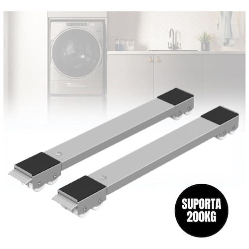 Feito em aço resistente e reforçado, esse suporte é capaz de suportar até 200kg de peso, garantindo a segurança dos seus eletrodomésticos e móveis durante o transporte. Além disso, ele possui uma base antiderrapante e anti vibração, que evita acidentes e protege o piso.