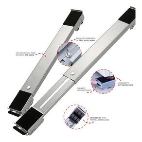 Esse suporte é ajustável e possui travas, o que permite que ele seja utilizado em diferentes tamanhos de eletrodomésticos, como fogões, geladeiras e máquinas de lavar. Sua profundidade e largura podem ser ajustadas de 40cm até 69cm, proporcionando maior versatilidade.