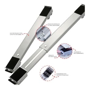 Esse suporte é ajustável e possui travas, o que permite que ele seja utilizado em diferentes tamanhos de eletrodomésticos, como fogões, geladeiras e máquinas de lavar. Sua profundidade e largura podem ser ajustadas de 40cm até 69cm, proporcionando maior versatilidade.