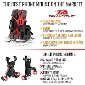 - ?? Destaque-se da multidão com a verdade – Se você é um motociclista entusiasta que desfruta de acesso ilimitado ao smartphone durante aventuras ao ar livre, você precisa do guidão patenteado para telefone de bicicleta da TruActive! Atualize sua bicicleta e torne seu passeio mais agradável e confortável com este incrível suporte de telefone de bicicleta! Testado e aperfeiçoado por ciclistas extremos e engenheiros qualificados para garantir a qualidade e durabilidade de cada peça!
