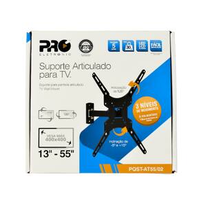 Suporte de Televisão Bi-articulado PQST-AT55/02: Suporte bi-articulado para TVs LCD e LED de 13" a 55". Oferece flexibilidade de ajuste de ângulo e movimento, com design robusto e instalação fácil. Ideal para otimizar a visualização em qualquer ambiente.