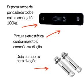 Suporte De Teto Retangular Para Saco De Pancada - Gorilla Suporta sacos de pancada de todos os tamanhos, até 150 kg. Ele acompanha dois parabotls. Diferente dos parafusos comuns os parabolts possuem maior fixação pois eles funcionam como chumbadores dando toda segurança que o atleta necessita. Fabricado com aço de alta qualidade o suporte para saco de pancada é zincado não enferruja , sua pintura é feita com a tecnologia eletrostática. Possui 2 pontos de fixação para prender firmemente o suporte ao teto; Indicações: Para sacos de pancadas até 150 kg; Acompanham o produto: 01 corrente com aproximadamente 30 cm 01 Gancho S; 02 Parabolts : 09 meses Fabricado por Gorilla Indústria e Comércio LTDA. Produto 100% nacional. Marca: Não Informado Ean: 751320932709