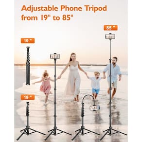 Foscotripé de telefone - ?Tripé extra alto com pescoço de ganso flexível?O tripé de telefone com pescoço de ganso de 40 cm de comprimento pode se estender de 48 a 215 cm. O pescoço de ganso flexível facilita o ajuste do ângulo enquanto captura fotos ou vídeos, especialmente útil para fotos ou vídeos de ângulo baixo ou alto ângulo, especialmente útil para fotos de ângulo baixo ou alto ângulo - ?Suporte de celular atualizado?Tripé para celular com um clipe de celular atualizado (5,8 cm-10 cm), acomodando todos os smartphones iPhone e Android. Pode ser equipado com uma luz de preenchimento ou um microfone para deixar suas selfies/retratos mais texturizados e brilhantes, sem ruído durante a gravação de vídeo. O design exclusivo de orifício duplo permite que você mude diretamente o ângulo de montagem do seu telefone sem ter que removê-lo repetidamente do clipe - ?Cabeça flexível com parafuso de 1/10.2 cm?Tripé para telefone com cabeça de 180° pode ser girado 90° para a esquerda ou direita, permitindo que o telefone mude diretamente do modo horizontal para vertical - ?Bastão de selfie fácil de trocar? O tripé ajustável versátil tem um bastão de selfie central separado, mais leve e fácil de usar. O controle remoto sem fio facilita tirar selfies, bem como tirar fotos/vídeos à distância, fotos em grupo, viagens e gravação de vídeo - Conteúdo da embalagem: 1 suporte de tripé, 1 suporte universal para telefone, 1 controle remoto sem fio, 1 pescoço de ganso, 1 bolsa de transporte. a qualquer momento se tiver alguma dúvida