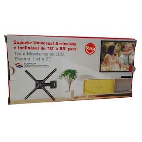 Distância da parede: 7 cm- 25 cm reto ou 15 cm com inclinação máxPeso máximo suportado 35 kgMaterial com espessura de 1,2 mmPintura eletrostática Evite comprar suportes frágeis, que não suportam o peso do seu aparelho e pendem para frente. Marca: Impar Estamparia