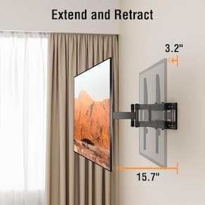 - Ajustável para melhor visualização - Este suporte de TV em movimento completo pode inclinar a TV +5°/-13° para reduzir o brilho, girar +/- 45° para cobrir vários ângulos, nível +/- 3° para máxima flexibilidade de visualização. O suporte giratório para TV com 6 braços articulados fornece uma extensão suave de 15,7" e uma profundidade de 3,2" na parede.