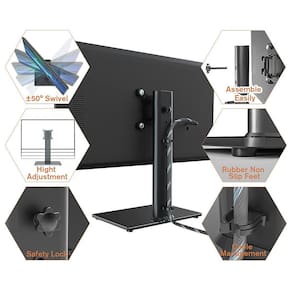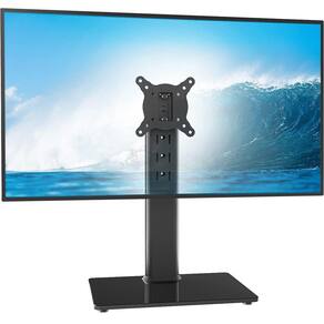 ESTABILIDADE E MUITAS APLICAÇÕES SUPORTE DE TV UNIVERSAL ? Projetado com um painel elíptico de aço resistente e base de vidro temperado de 8 mm, o suporte de TV independente My Stability pode facilmente segurar sua TV em sua mesa com segurança e estabilidade. Além disso, meu suporte de TV universal de mesa acomoda facilmente TVs de 13 a 32 polegadas com padrão VESA de 50 mm x 50 mm a 100 mm x 100 mm, comporta até 77 libras