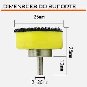 - Marca: Dremax - Referência: MD031 - Haste Curta de 2.35mm - Diâmetro: 25mm - Com base aderente - Indicadas para uso com lixas e esponjas com base aderente não inclusas - Resistente ao desgaste e durável - Indicado para todas as marcas de micro retíficas e mini lixadeiras com mandril ou pinça de 2.4mm como Dremel, Charbs, Einhell, Black+Decker, Dremax, Mondial, Vonder, Titanium, Western, Ingco, Gamma, Wesco, etc. - Garantia: 90 dias contra defeitos de fabricação Marca: Dremax