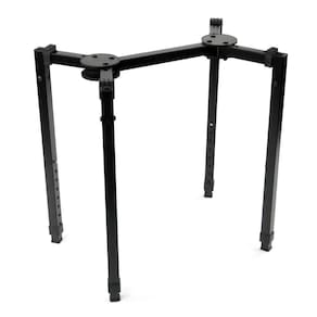 - A construção em aço garante grande estabilidade para equipamentos pesados. Barras de apoio e dobradiças adicionam capacidade extra e permitem que as pernas se dobrem
