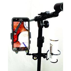 Suporte duplo de celular e líquidos, todo fabricado em metal de alta resistência, pintura epóxi e de simples instalação desenvolvido por JC suportes para ser acoplado em pedestais de microfone padrão, compacto medindo somente 24x10x10 cm e pesando 307g na cor preto fosco, sendo transportado facilmente, contém um recipiente para colocar seu copo, garrafinha de água, taça de bebidas etc. Vai facilitar muito nos seus shows, festas, lives, palestras etc. O reservatório para copos tem o aro superior ajustável para se adaptar a diversos tipos de recipientes e conta também com um suporte para o seu celular que tem uma haste flexível de fácil manipulação, acompanha manual de instruções. O pedestal de microfone não acompanha. Homologação Anatel: 052051802149 Marca: Jc Suportes