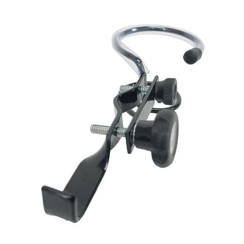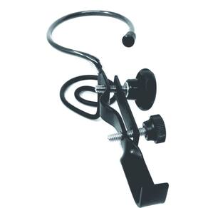 Suporte duplo de pandeiro e copo, todo fabricado em metal de alta resistência, pintura epóxi e de simples instalação desenvolvido por JC suportes para ser acoplado em pedestais de microfone padrão, compacto medindo somente 26x9x7 cm e pesando 220g na cor preta, sendo transportado facilmente, contém um recipiente para colocar seu copo, garrafinha de água, taça de bebidas etc. Vai facilitar muito nos seus shows, festas e rodas de samba.