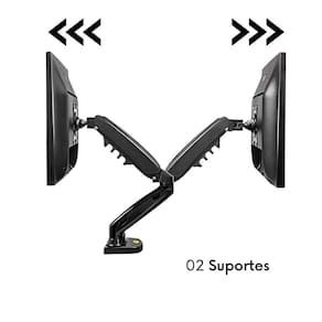 Suporte para 2 Monitores, com pistão a gás e juntas articuladas para facilitar o ajuste. Total flexibilidade para movimentos, sem esforço e sem a utilização de ferramentas. Design retrátil e ergonômico, economiza espaço e promove benefícios posturais. Permite o uso na borda da mesa ou sobre o tampo através de furo. Fabricado em liga de alumínio fundido super-resistente. Organizar de cabos integrado ao corpo do suporte.--------------------Especificações Técnicas:Para monitores: 17'' a 27'' polegadas; Capacidade de carga: 2 a 9 kg; Amortecedor a gás; Vesa 75 x 75 mm à 100 x 100 mm; Composição: Termoplásticos e metais;--------------------Itens inclusos:01 x - Suporte duplo para monitores; 01 x - Kit de Fixação;--------------------Trabalhamos com produtos de qualidade, sempre oferecendo o melhor suporte e produtos para todos os nossos clientes.Qualquer dúvida nos envie uma mensagem.