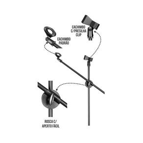 - Rosca padrão para encaixe do cachimbo ( suporte para o microfone ) e para o encaixe da presilha rosca com adaptador