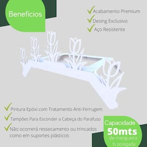 O Suporte de Mangueira Tulipa Branco é a solução ideal para evitar esses problemas e dar um toque especial na decoração em seu jardim.
