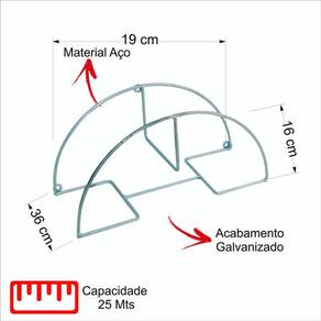 Especificações: Suporte enrolador mangueira reforçado Marca: alpif aramados Material: produtos fabricados em aço com cromação ou zincagem. Instruções e cuidados Especificações: é necessário respeitar as especificações de uso ex.: peso suportado para garantir a durabilidade do produto. Necessário montagem: não Cuidados com o uso: não utilizar produtos abrasivos, e sempre deixar o produto seco. Durabilidade: alta durabilidade Medidas na descrição e foto dos produtos
