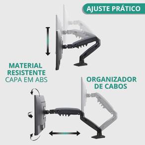 Atributos e benefícios: - Total flexibilidade para movimentos, sem esforço e sem a utilização de ferramentas; - Produto Ergonômico (Certificado NR17); - Design compacto e retrátil que economiza espaço; - Desenvolvido para melhorar sua experiência de visualização; - Construído em liga de alumínio fundido e super-resistente; - Acompanha morsa para fixação em borda de mesas ou sobre o tampo da mesa; - Organizador de cabos.