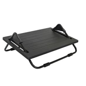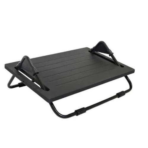 Material da Base do Apoio: MDF Material da Estrutura do Apoio: Aço Carbono Cor: Preto Inclinação: 15 Capacidade Suportada: Até 20kg Incluso: 1 apoio para pés e 1 manual de montagem Dimensões Aproximadas: comprimento 47cm x largura 41cm x altura 20cm Altura da bandeja em relação ao solo: 12,5cm Características: Regulagem de inclinação: 15 graus Plataforma em MDF: Comprimento: 47cm x Largura: 30cm Estrutura em aço carbono